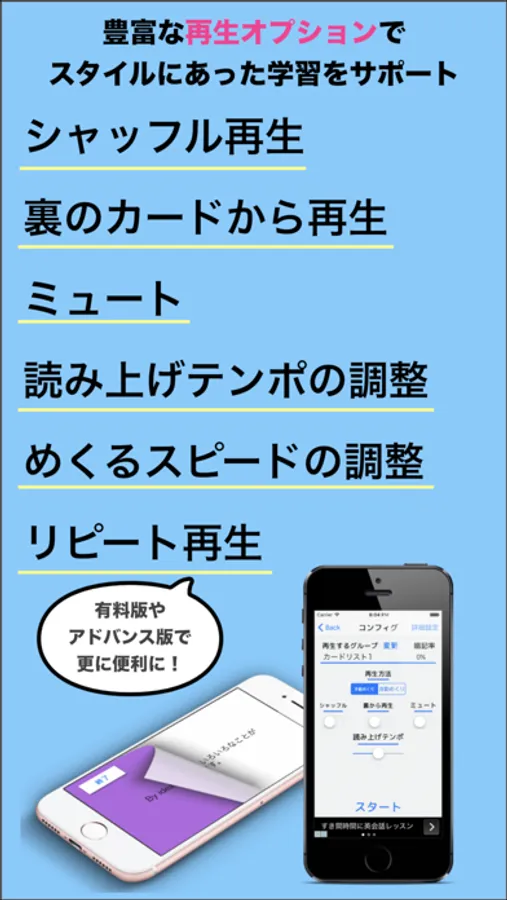 選べる再生モード。自動再生では、聞き流すだけの学習も可能。