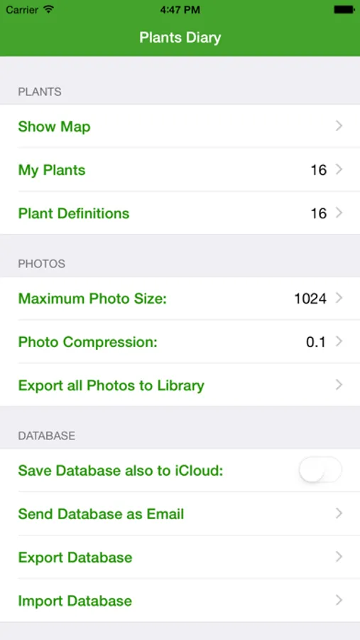 - The database can be automatically backed up to iCloud. It can be exported/imported also to/from other storage places (for instance, DropBox). This makes it possible to use the same data on multiple devices.