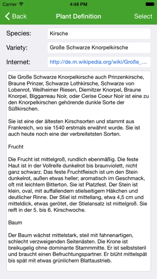 - Create any number of species/varieties, which can then be assigned to the plants. In the app are no species/varieties predefined. For each definition an Internet link and a text description can be stored.