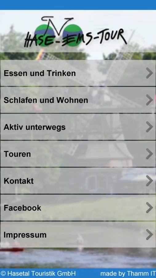 Fernab der Hauptverkehrsstraßen verläuft die Hase-Ems-Tour durch eine einmalige, steigungsarme Landschaft. Vorbei an Naturdenkmälern und romantisch gelegenen Wasserschlössern, an Mühlen und Artlandhöfen sowie an alten Schleusen. Vom Startpunkt Melle über die Friedensstadt Osnabrück geht es weiter über Bersenbrück und Löningen im Hasetal bis ins Emsland. Meppen und Lingen werden angesteuert, bevor die Route über Rheine zurück nach Osnabrück führt.