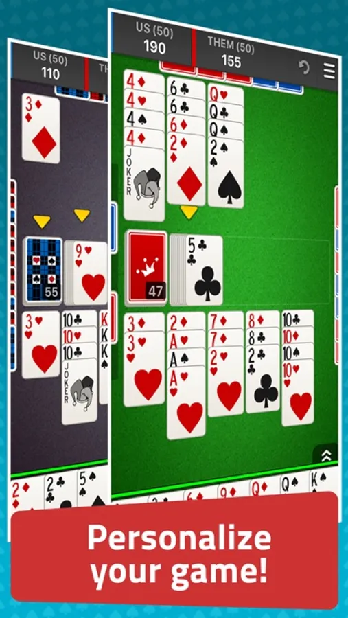 - Classic or Turbo mode: Choose between Classic Canasta mode, with multiple hands and points adding up to 5000, or the Turbo mode, a quicker variation enabling you to play shorter matches!