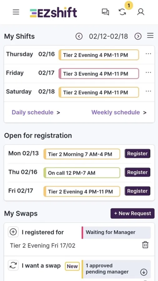 EZshift is a rules based system that manages your schedule. The system includes every aspect of dynamic shift scheduling, from communicating with your employees and colleagues and sending employees requests, through automatic employee assignment to their shifts and even managing time and attendance in real time.
