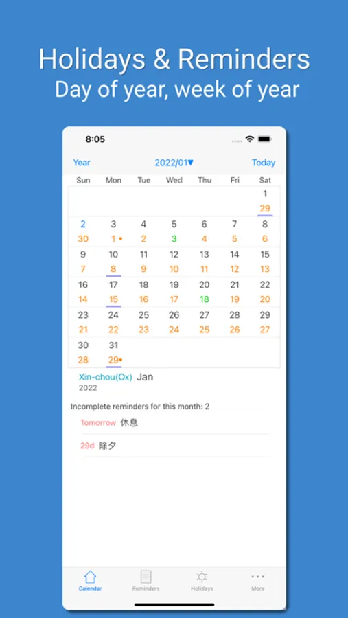 PP Calendar is a Calendar app focusing on reminders and holidays.