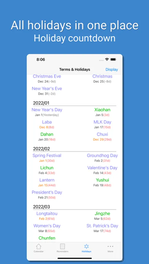 2) Region specific holidays.(United States, Japan, South Korea, China mainland, Hong Kong, Taiwan)
