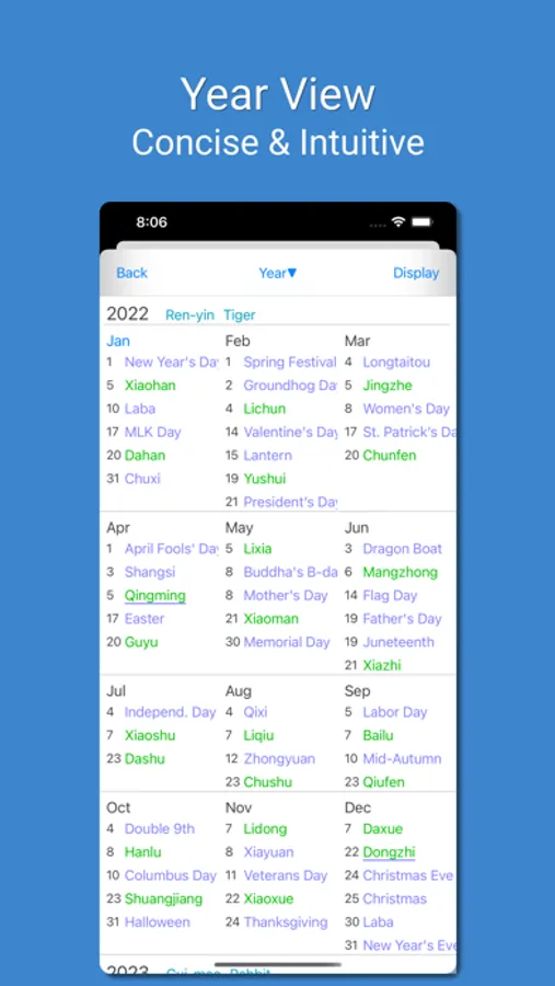 d) You can check out not only lunar dates, but also Stems-and-Branches, Chinese zodiac, the 24 Solar terms, and traditional Chinese holidays.