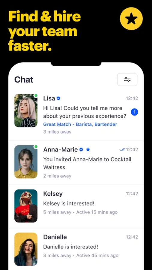 [+] Ask candidates relevant questions and schedule an interview via our built-in chat.