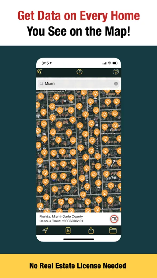 When you are out in the field, get property & owner data on virtually every home around you! Before going into an area with poor cell coverage, select the respective census tract (or tracts) on the map — that is, just press on the map to select the tract. This way, all data on all properties in the tract will be downloaded into the app and you’ll be able to access it offline later on.