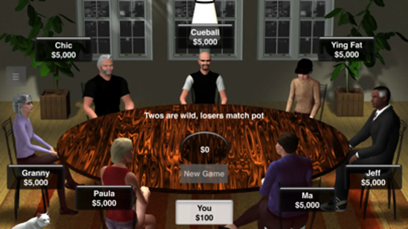 If you lose all your money the game will, unlike some people, reliably advance you a $100 chip each new game (although it may subject you to advertising when that happens). You may also buy extra chips to help whomp your skilled opponents.
