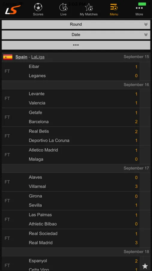 In turn, it is possible to mark the events of your interest to follow them all together in your own section of favorite matches.
