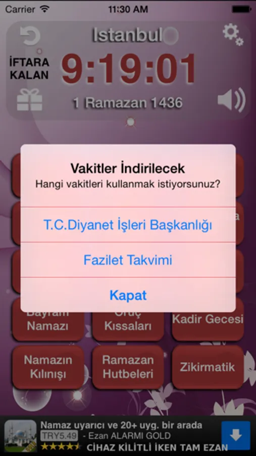 √ Ezan ALARMI (Namaz vakitlerinde sesli uyarı +30 uygulama)