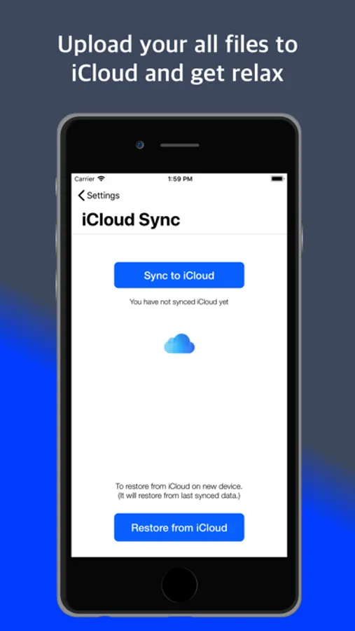 Your all the photos, video and files are stored locally on your device only. So it is 100% private. It only uploads​ to YOUR iCloud when you sync yourself. We have NO ability to remotely access your photos or any files as we are not using any of our own server or anything.