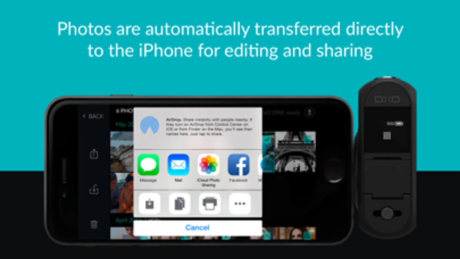 • Use your iPhone display as the viewfinder and on-screen controls for the DxO ONE camera