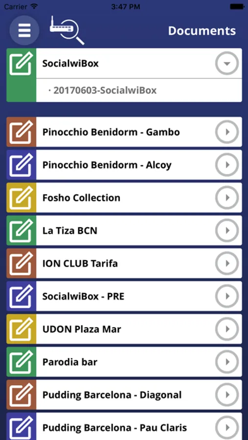 Application for Social Wifi S.L. clients and current license of SocialwiBox. It allows to obtain installation information in real time, tracking of the connected users, repository of monthly reports and direct access to Control Panel. The application is permanently synchronyzed with each installation and will throw an alert if there is any incident