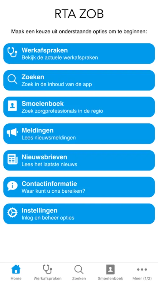 De app bevat naast de afspraken en een smoelenboek ook de nieuwsbrieven van de transmurale centra. Voor gebruikers met een inlogcode voor het Smoelenboek zijn de contactgegevens van huisartsen, specialisten ouderengeneeskunde en medisch specialisten toegankelijk via de app.