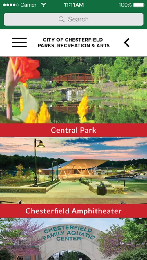 The Chesterfield Parks, Recreation & Arts App allows you to search for local events, sign up for recreational programs, find local art, parks, facilities and trails in the City of Chesterfield, Missouri. Each park and facility is listed with its amenities, hours, events, programs and a Google map to provide directions. You can also search for events and recreation programs within your desired park or facility and add to your calendar or share with friends and family.