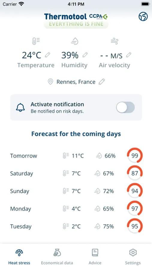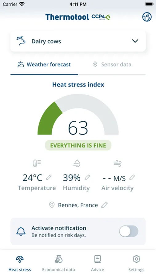 Developed by CCPA GROUP, ThermoTool ™ is a decision support application that allows ruminant, swine and poultry farmers to indicate the level of heat stress.