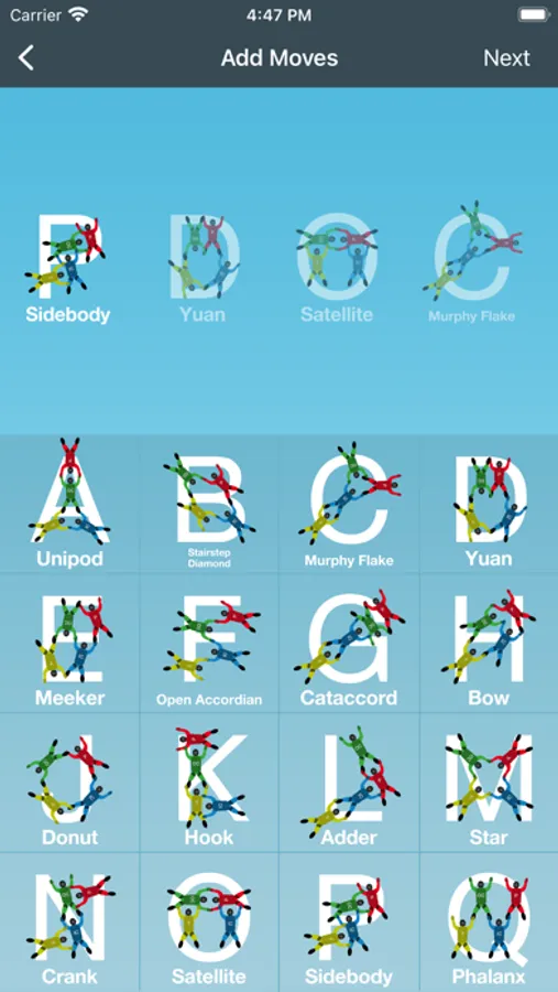 Plan your next formation skydive and view animated transitions using MyDive's skydiving simulator. It's incredibly simple to use and it also allows you to save and share your planned dives with friends.