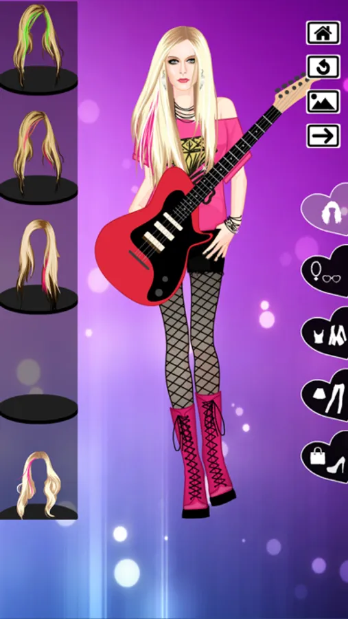 Dress up her for the next music video. It's always fun to make a mess around the party as Rock star sings here, especially if you are crazy enough to fall in love and don't care about anything. Anyway, the dress up game is always fun. So, be cool.