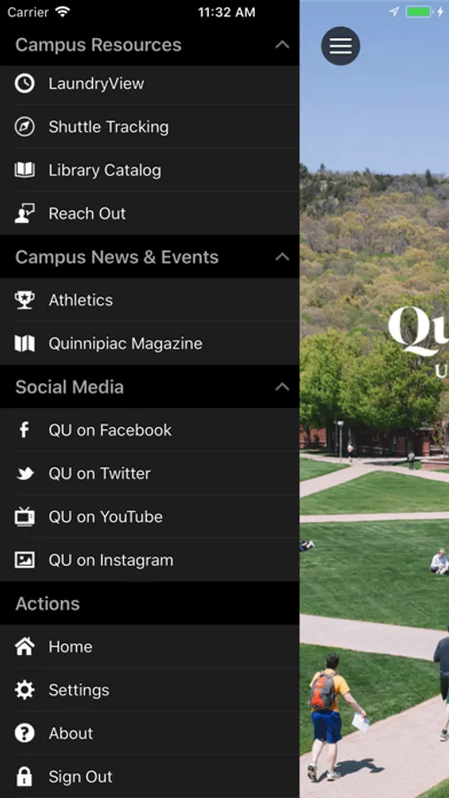 Other additional options are available such as: QU Magazine, University Calendar, Dining Menu & Hours, QU Twitter Feed, Official Quinnipiac News Feed, and much more!