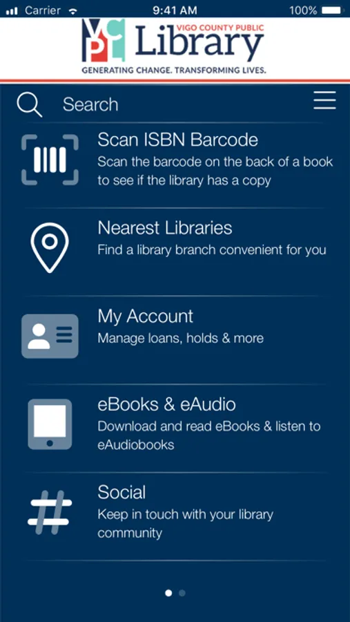 VCPL Mobile lets you connect with the Vigo County Public Library from your favorite device, whenever you want and wherever you are. With VCPL Mobile, you can find your favorite books, movies, ebooks, and more, place and manage holds, and renew your items from your tablet or phone.
