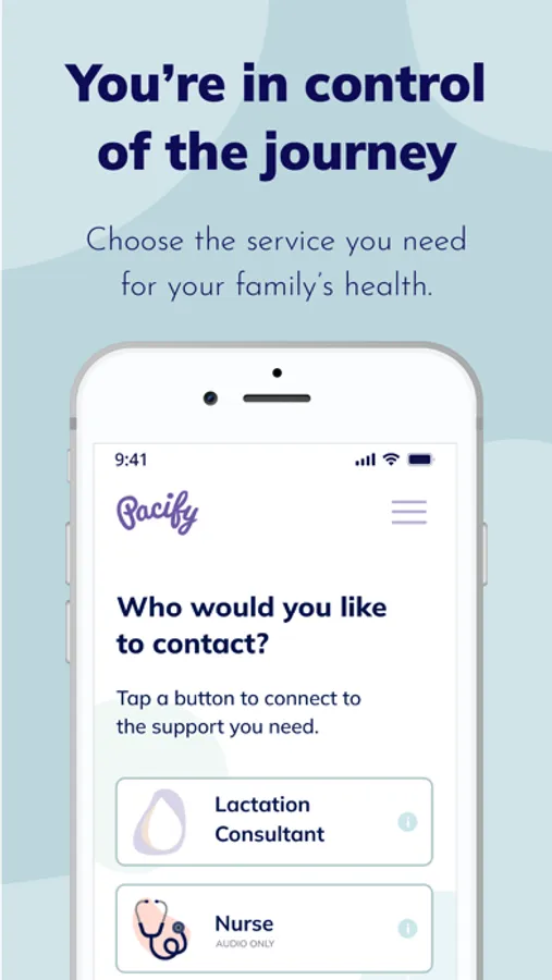 The Pacify app provides on-demand access to a nationwide network of maternal and pediatric experts, available for consultation 24/7 through video and audio visits.