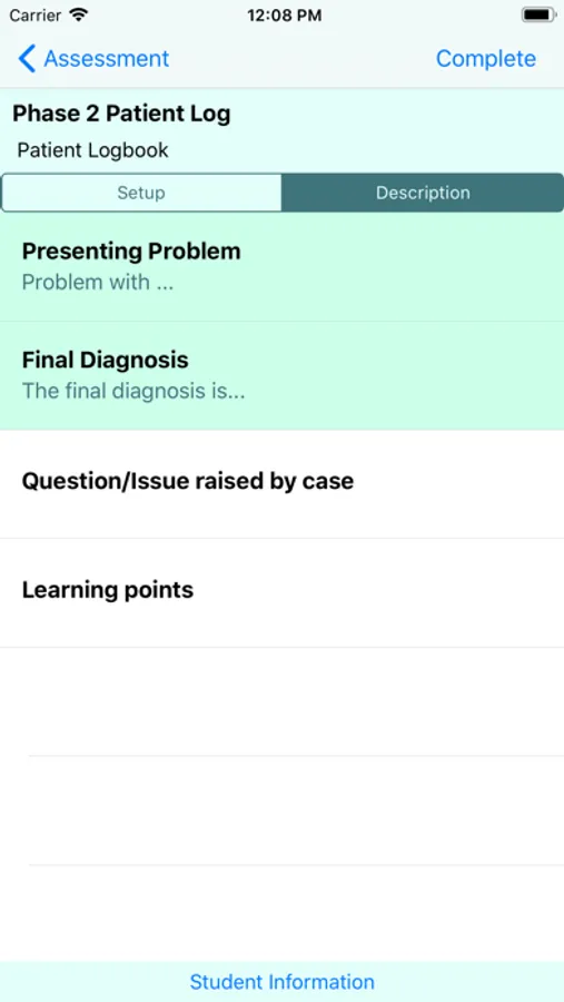 The aim of the app is to improve the efficiency of in-training assessments and provide a flexible system for students to record their clinical experiences. The app provides several features including: