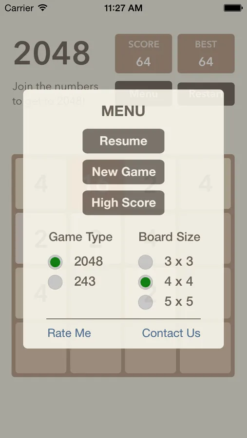 Two game types: 2048 & 243.