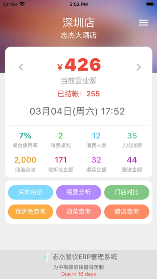老板通系统,帮助客户实现手机上实时查看餐厅营业数据。