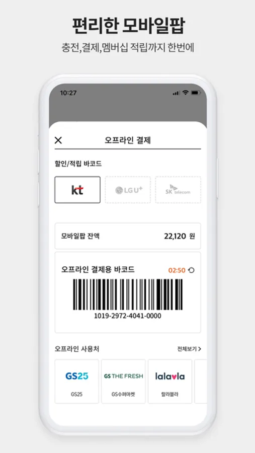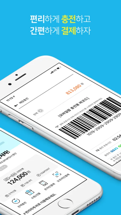 전국 GS25와 GS더프레시는 물론 앱 내에서 간편하게 충전할 수 있고, 잔액&결제&충전 내역도
