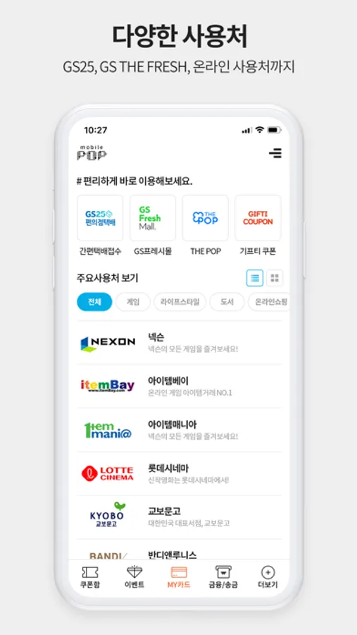 모바일팝은 전국 GS25와 GS더프레시는 물론 온라인 및 모바일 사용처에서도 현금처럼 사용 가능한