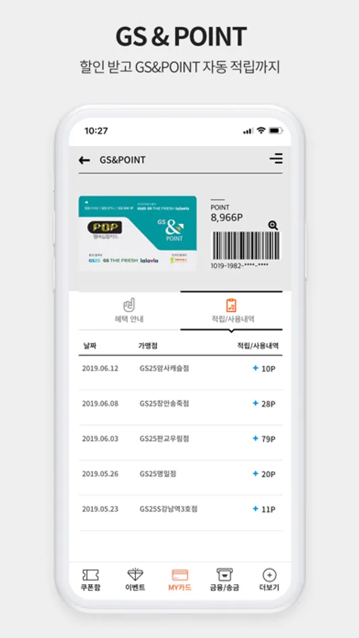간편하게 결제가 가능하고, GS&POINT 적립 및 다양한 할인/적립/사은품 혜택을 받을 수 있어요.