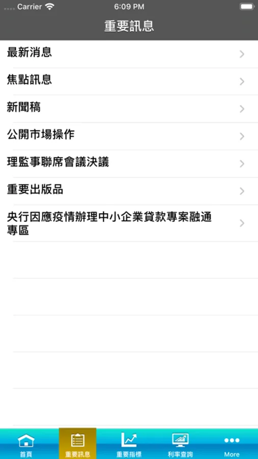『重要訊息』:提供發布之新聞稿、公開市場操作及理監事聯席會議決議等相關訊息。
