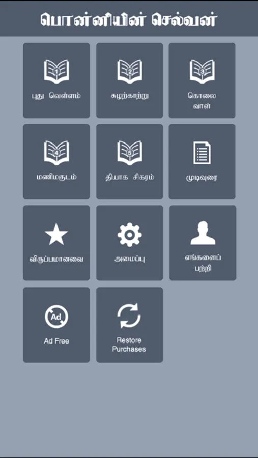 Users can read and enjoy all the 5 volumes of Ponniyin Selvan with this application.