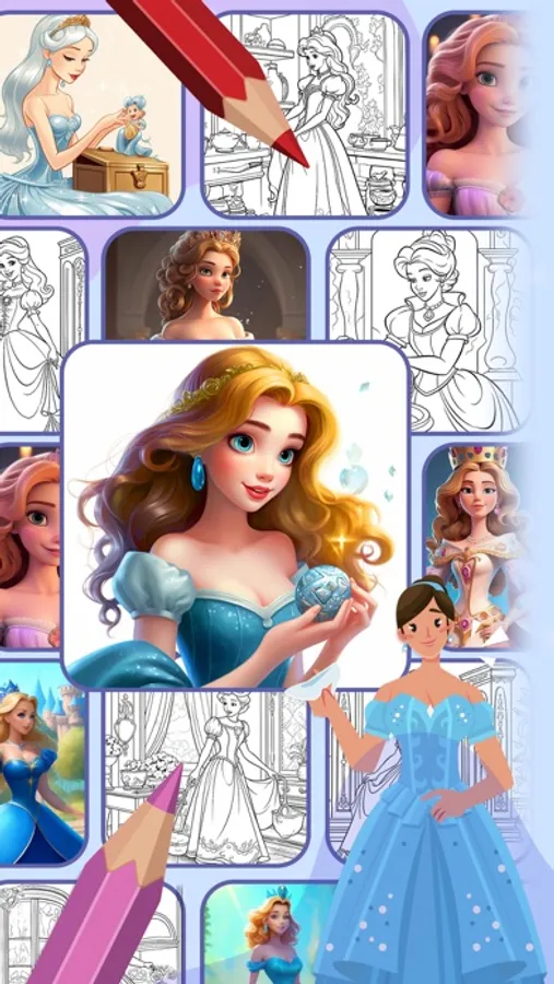 Do you like coloring princess drawings and different scenes from fairytales? Then, this app is perfect for you. We have collected the lovely drawings of beautiful princess Cinderella with gorgeous dresses, princess makeup and more. Play with different color combinations and increase your creativity. Download now and start to color, paint and doodle!