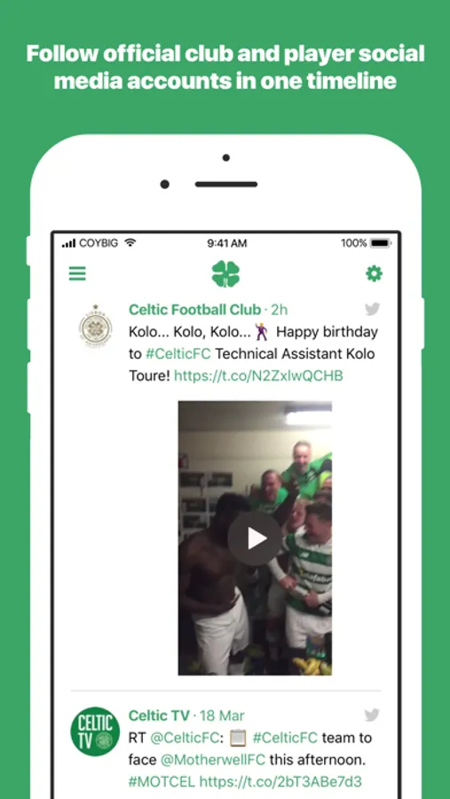 - Keep track of all official Celtic FC and players' social media activity in one timeline.