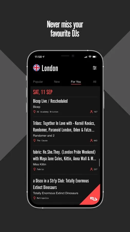- Follow your favourite DJs, artists and clubs to get custom listings