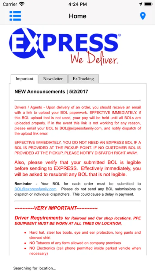ExTracking is a mobile GPS application specified for distinct use with Express Family of Companies.