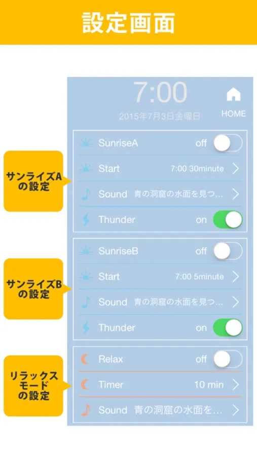 ・サンライズ設定