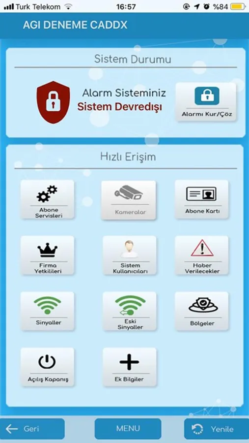 Güvencem Müşterilerinin, Alarm panelleri üzerinden Alarm Merkezine gönderdikleri sinyalleri takip edecekleri uygulama. Bu uygulama ile alarm sisteminin kurulu olup olmadığını ve merkeze gönderilen son 30 sinyali görülebilir.