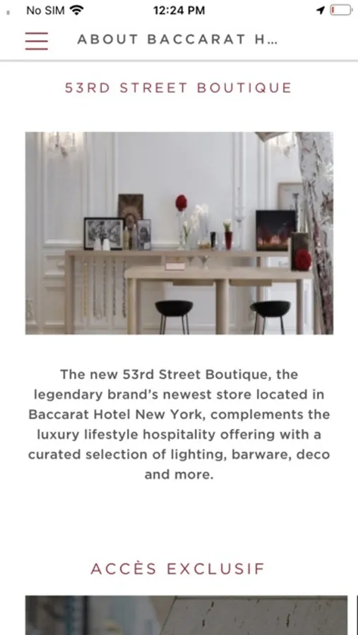 The Baccarat Hotel app gives our guests a new and exciting way to customize your stay. Guests can control the TV, climate and lighting in our specially equipped Touch rooms, as well as browse all of the services and facilities and receive messages from the hotel.