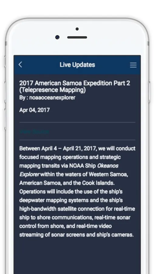The app also provides information on the location of NOAA Ship Okeanos Explorer and updates about our dives.