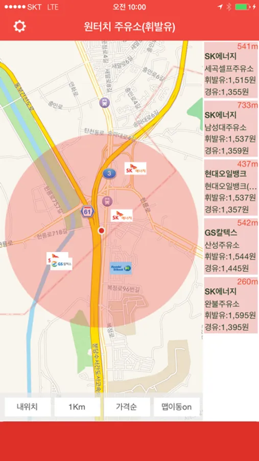 원터치 주유소는 전국 주유소 유가정보를 실시간으로 확인하실 수 있습니다.