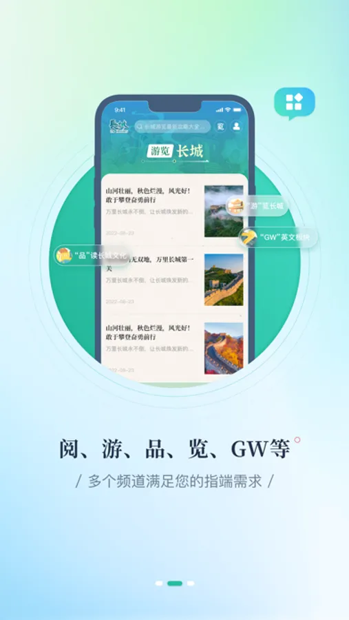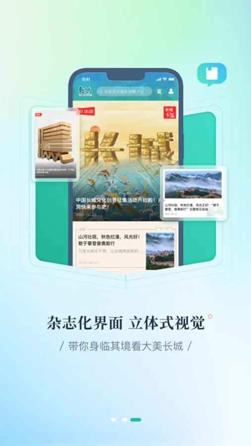 “长城24小时”客户端以“弘扬长城文化 讲好长城故事”为宗旨,是由长城新媒体集团倾力打造的全球首款长城公益客户端。客户端在原“长城24小时”的基础上转型升级,突出新媒体特色,以长城题材宣传报道、长城资源保护和长城文化传播为主体内容,最新鲜的长城资讯、最精彩的长城故事、最丰富的长城知识,带您真正走进万里长城。