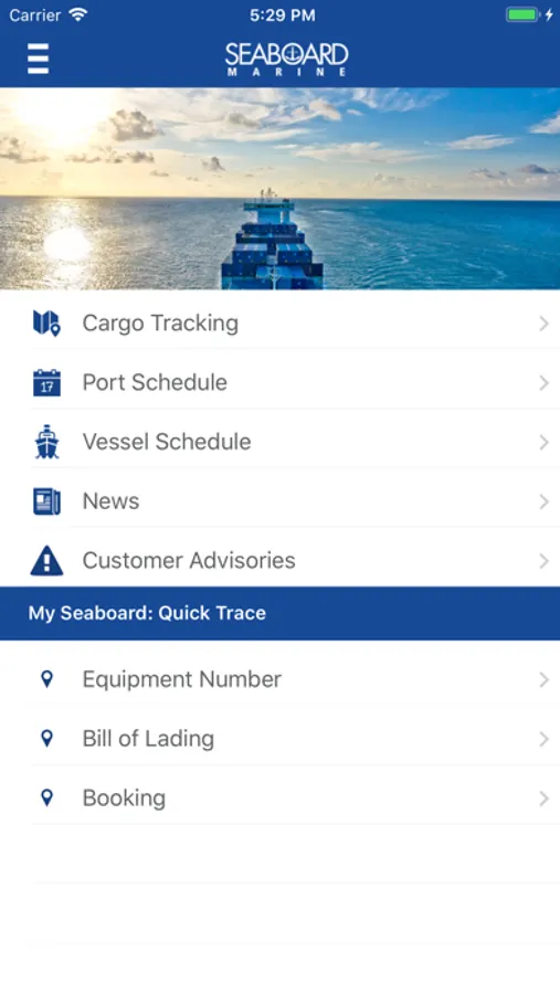 The Seaboard Marine App offers user-friendly mobile services to enhance customer support throughout the ocean transportation process.