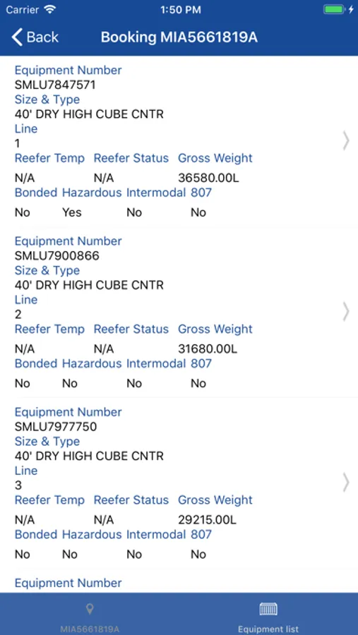 Track your equipment for an up-to-date status of your shipment from its latest transaction.