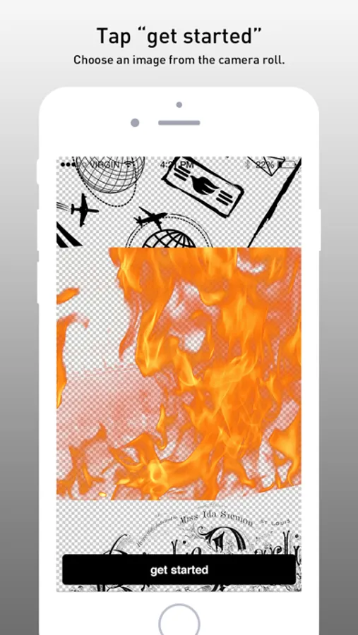 Tap “get started" in the home screen and choose an image from the camera roll.