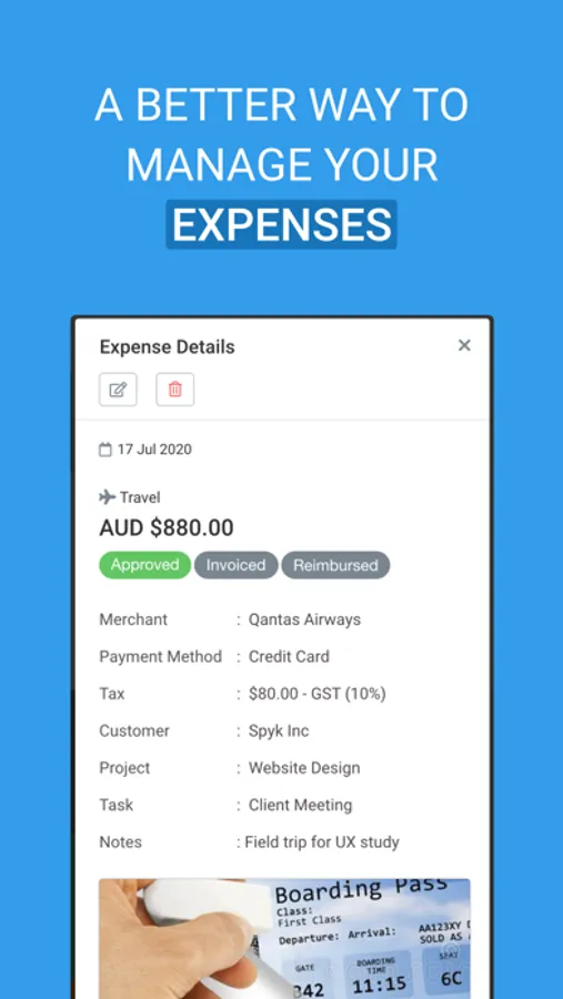 • Attach receipt photo/file to expenses