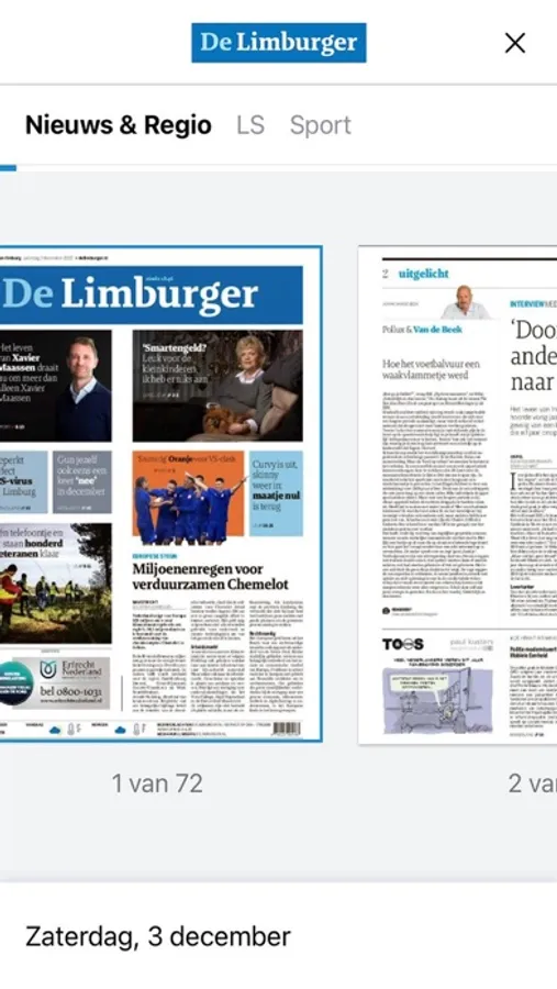 Kies zelf hoe je de krant bij voorkeur leest: door de krant bladeren en uitvergroten wat je precies wilt lezen, of klikken en één voor één de artikelen op je scherm toveren. Heb je een dag gemist of wil je iets opzoeken? In de app zit een archief. Je kunt tot 30 dagen terug.