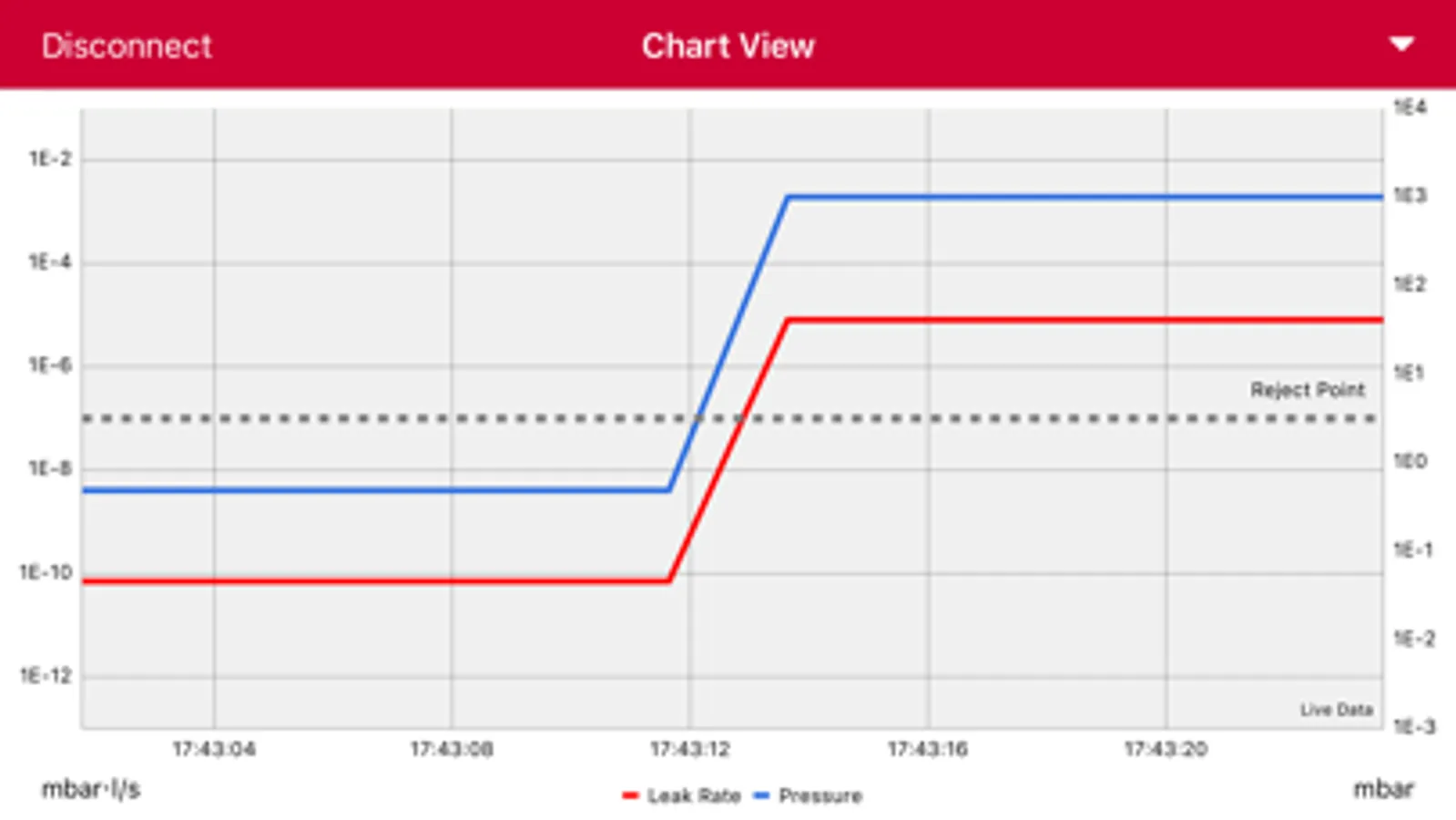- Monitoring the leak rate and/or the inlet pressure (values and scale)