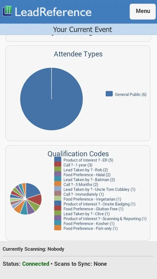 Simply scan the barcodes on delegate badges and select the relevant options to qualify leads.